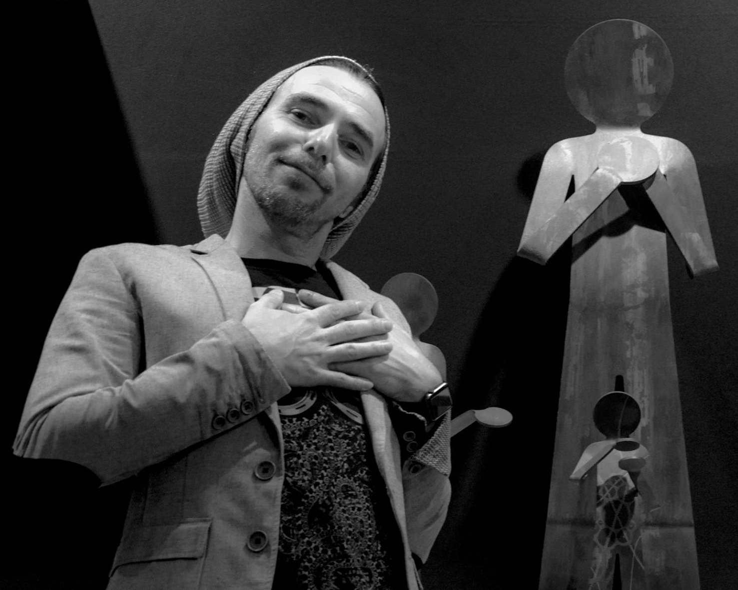 Avant la création du Flexo, il développe un premier corpus important de sculptures en bois. Cette série, centrée sur la représentation du corps et des émotions humaines, marque le début de son parcours artistique et lui permet d’être remarqué par le marché de l’art. Trois œuvres sont notamment adjugées lors d’une vente à l’Hôtel Drouot, lui ouvrant l’accès à une première cotation Artprice.